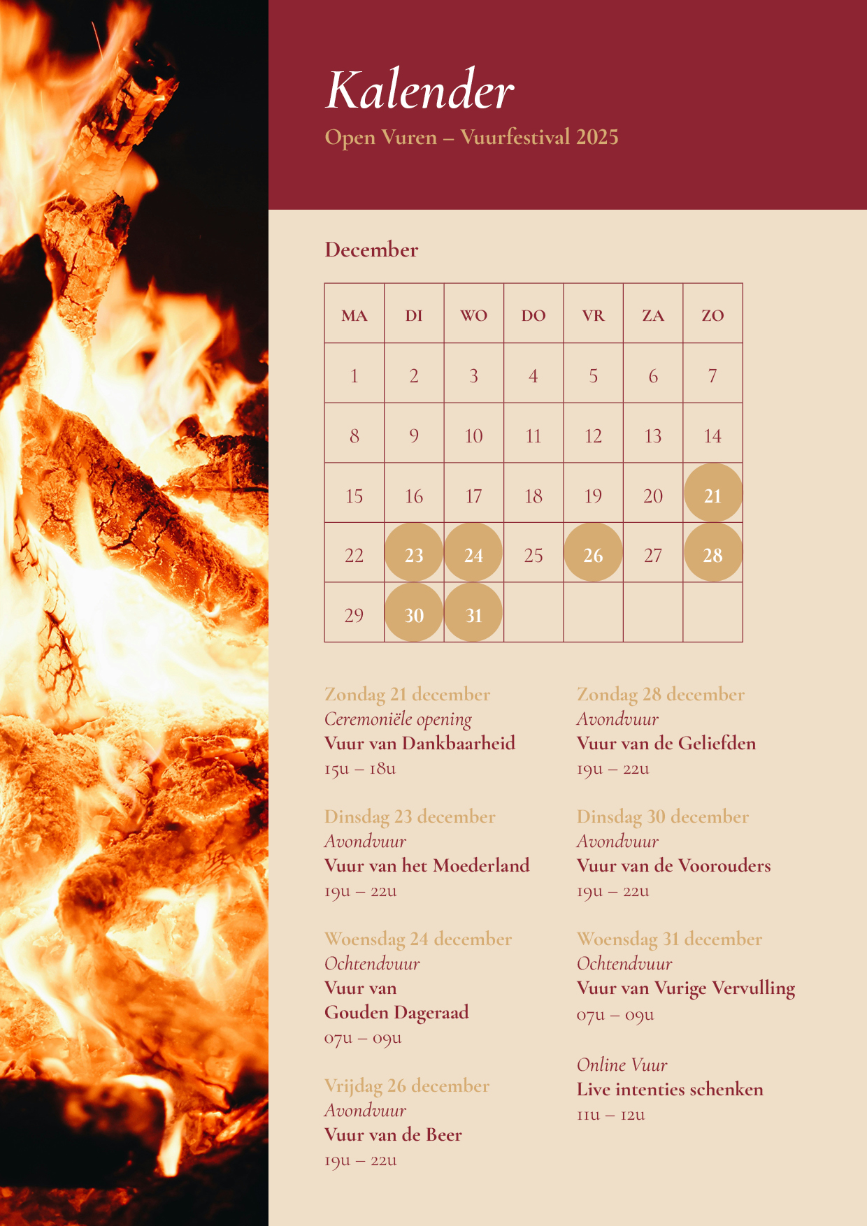 Van zondag 21 december 2025 tot woensdag 31 december 2025